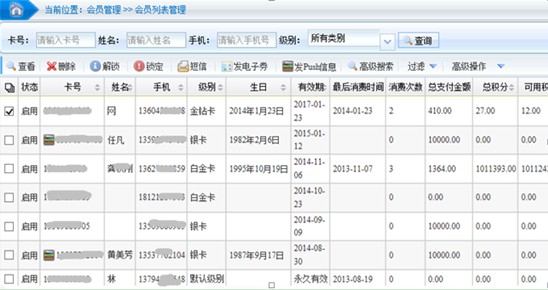 商户可查询本店会员信息,消费次数和金额,搜索沉默顾客或优质顾客,主动发送促销优惠并关联其银行卡,并通过短信通知会员,刺激其二次消费。