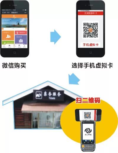 消费者可通过网站、微信及APP进行移动支付购买,除了传统的实体卡,该卡还创新推出二维码手机虚拟卡,两款卡均为实名制绑定,供消费者自由选择,均能在景点的太乙安卓Android pos机上进行扫描。
