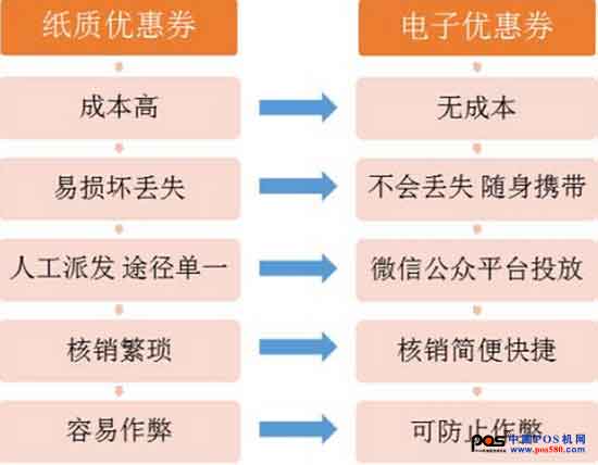 慧POS通过接入微信支付平台,成为商户与互联网的连接纽带,升级后的卡券功能,支持商户通过慧POS设备、二维码、微信公众号等方式投放电子卡券,顾客既可在公号中领取相应卡券,又可以通过微信“扫一扫”慧POS上优惠券对应的二维码领取。通过一台慧POS,商家就能完成包括支付、微信营销、卡券派发及核销这一闭环上的所有操作,同时记录下这一链条上的所有相关数据,后续可以面对定向客户推送优惠券或会员卡等实现二次营销,并可将顾客由粉丝进一步转化成会员。