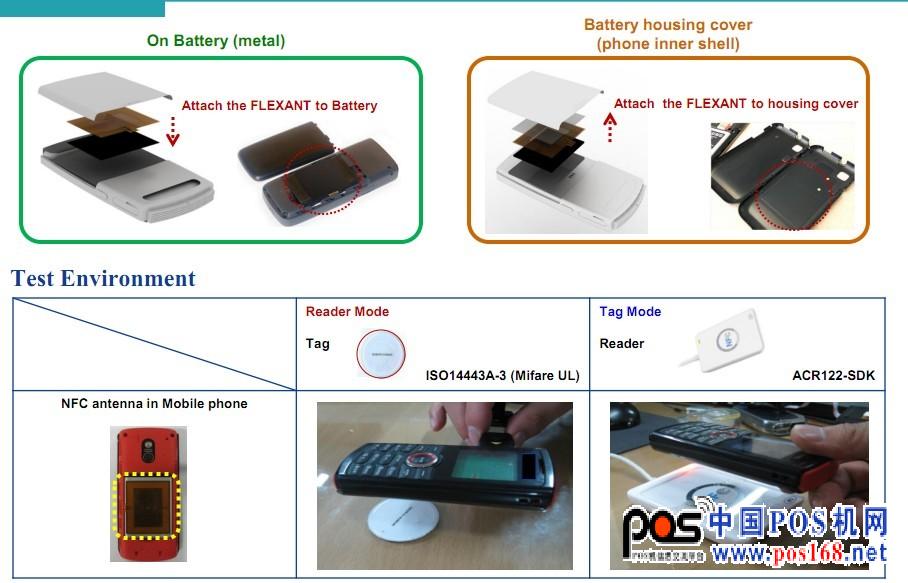近几年,13.56MHz的高频RFID技术由于性能稳定、价格合理,此外其读取距离范围和实际应用的距离范围相匹配,因而在公交卡、手机支付方面的应用得到广泛的应用,尤其是在韩国、日本等地。下面两张图片,图1为韩国某餐馆用手机支付就餐费用的实例,图2为电子标签贴合在手机电池上的图片。