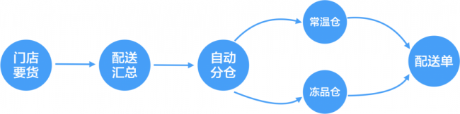 4、配送能力全面加强,支持企业规模发展:门店要货—配送汇总—自动分仓—常温仓、冻品仓—配送单。