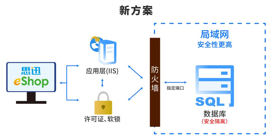 今年1月,思迅发布B/S产品数据安全方案,支持数据库、应用层和许可证分开部署,实现数据“内网”储存,大幅降低被“勒索”的风险。