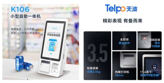 广东天波台式迷你便利店自助收银机K10 MINI机身实重仅3.5kg,占地面积超小,迷你多能,可支持扫码、刷卡、人脸识别,一屏三刷,更适合小型店铺、便利店使用。板载工业级芯片组、六核CPU,性能稳定,采用11.6寸IPS显示屏,覆盖高硬度钢化玻璃,增强抗摔性和耐划性,配置防尘网,更易清洁,减少机器维护时间。4G RAM + 16G eMMC,提供SDK接口,支持二次开发,内置硅胶唛,收音更清楚,为实现人工+智能的云值守服务提供硬件支持。