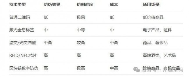 高端防伪:如RFID芯片、纳米光学材料、区块链溯源等,技术门槛高,仿制成本大,可信度较高。