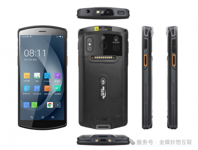 (2)PDA(掌上电脑): 它是一台自带智能系统的微型电脑。它集成了扫码引擎、电池、操作系统(如Android、Windows)、处理器、屏幕和存储空间。可以独立安装和运行进销存管理APP,完成扫码、数据处理、逻辑判断、数据同步等一系列操作。