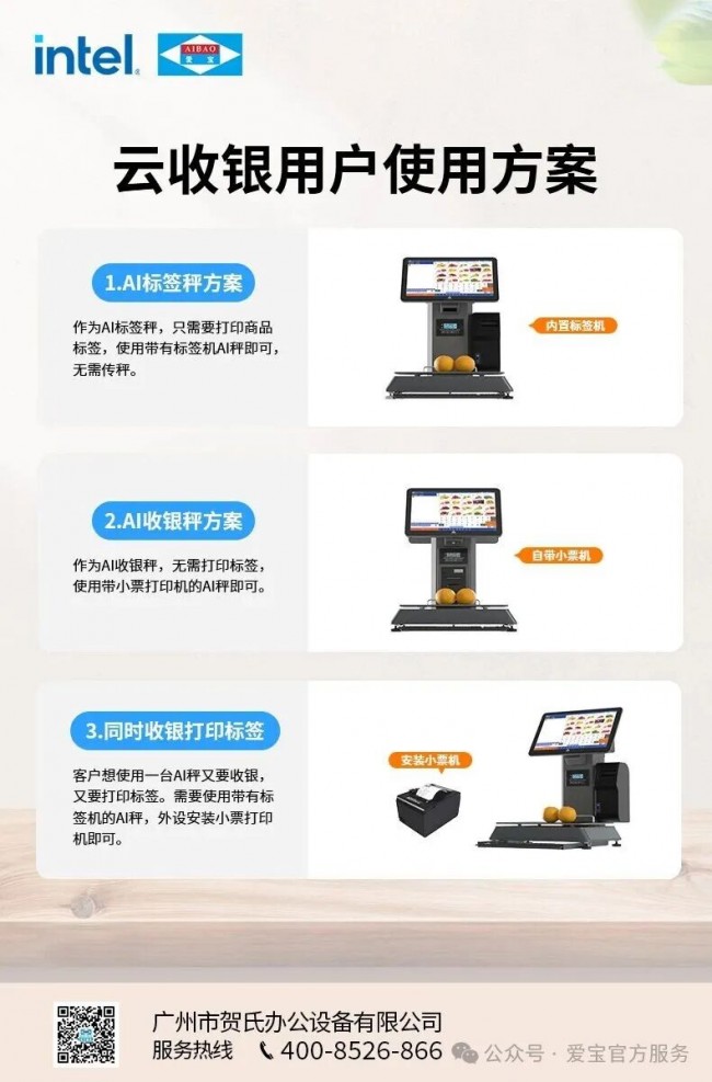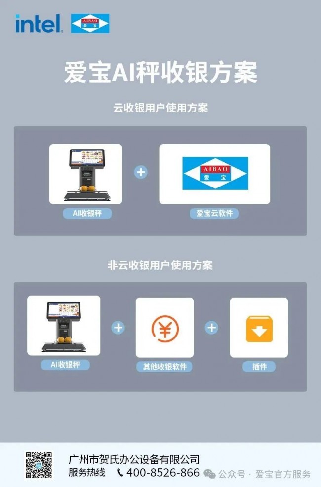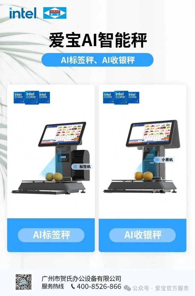 爱宝与英特尔携手合作,打造出一款AB-8688AI智能识物收银秤。