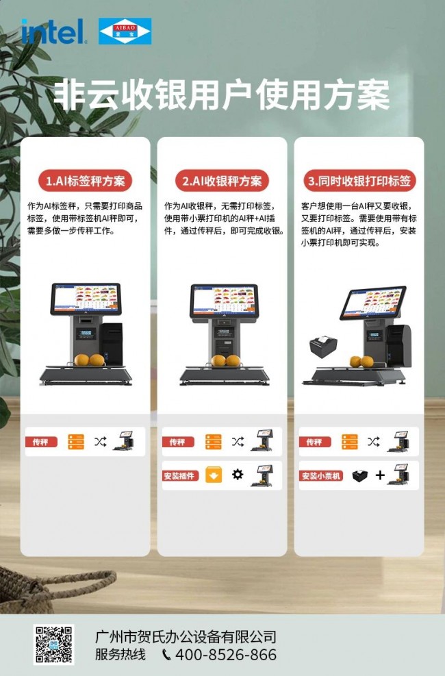 爱宝携手英特尔打造的一款AB-8688AI智能识物收银称重一体秤,实实在在的解决了商家的痛点。