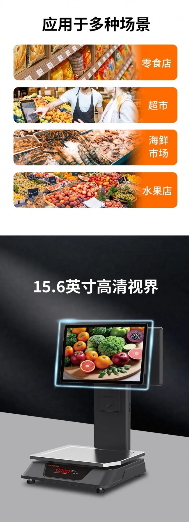 新品上市!京东收银D6智能AI称重收银一体秤,省空间,