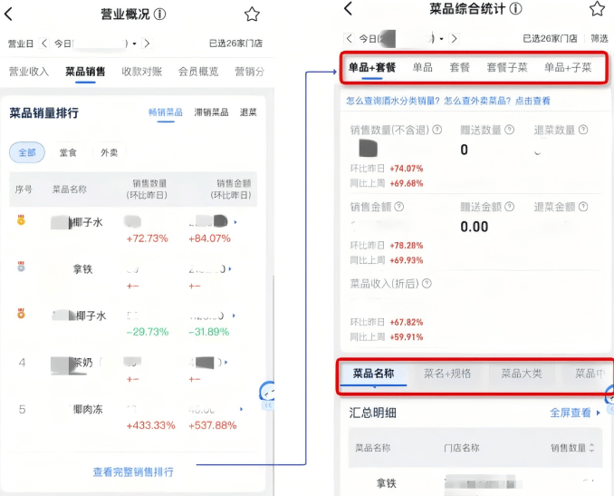 商家可通过客如云后台可以深度分析会员消费行为、口味偏好,为产品迭代提供精细化数据;系统支持菜品销售排行统计,结合同环比数据,精准判断一个产品是否为爆款或滞销。针对新品,更能实时追踪销售数据并生成分析报告,帮助商家快速评估其市场价值,动态调整吸引新客。