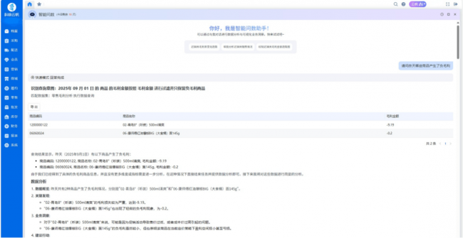 科脉云帆不仅能够快速定位问题商品,还能智能分析导致负毛利的关键因素。