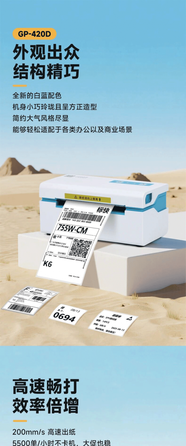 【新品速递】GP-D424桌面热敏标签机来了!4寸热