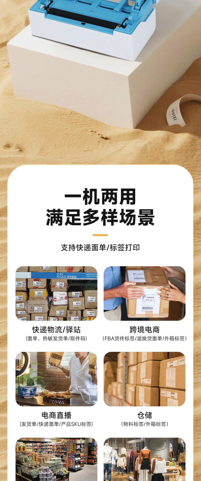 GP-420D热敏4寸无纸仓面单打印机,快递单/取件码/标签一机通打,省空间更高效~
