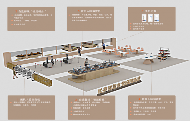 特达斯AI视觉结算自助餐台,无需定制餐盘,即可实现毫秒级精准结算,直接识别餐具形状和菜品。