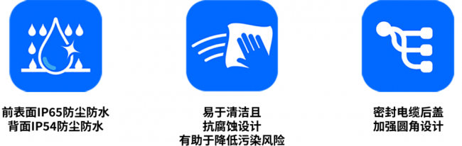 工业级I系列Steel版本不锈钢机身触控一体机,支持横向或竖向两种安装方式。通过VESA安装孔,可灵活用于壁挂式、立柱式、机械臂以任何支持VESA安装的第三方支架。