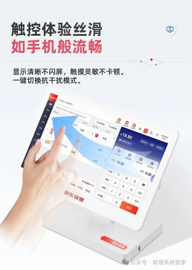 高清一体触摸屏,配备2G+32G大存储,稳定存储交易数据