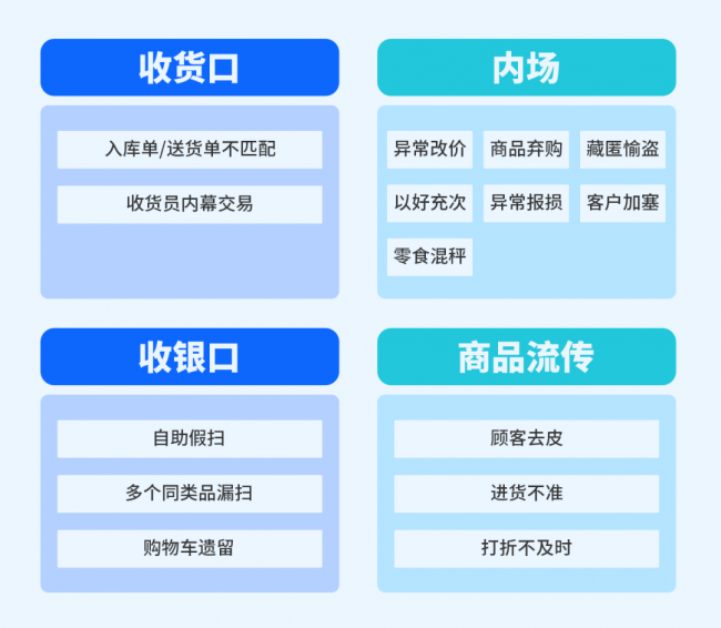 从收货、上架、销售到盘点,AI模型对全流程中的异常行为进行7x24小时不间断分析,如异常改价、重复刷卡、漏扫等,真正做到防患于未然。