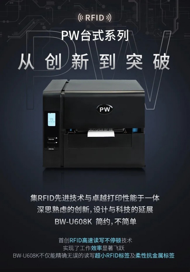作为台式系列的创新力作,BW-U608 系列在 RFID 标签打印领域实现双重突破: