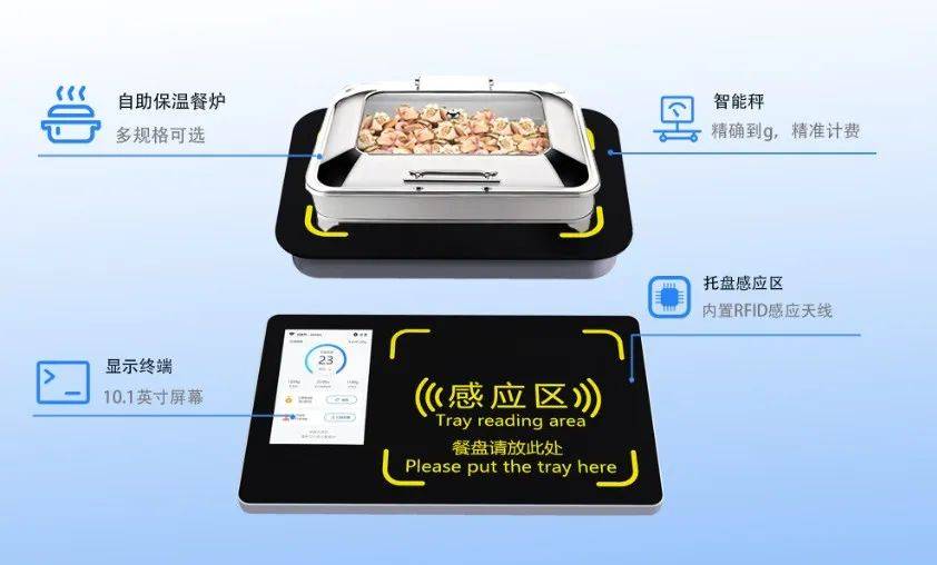每一道菜品都设定有单位价格,系统根据取餐前后托盘的重量变化,自动计算消费金额,精确到克。不仅价格透明,也鼓励用户按需取餐,有效减少浪费。
