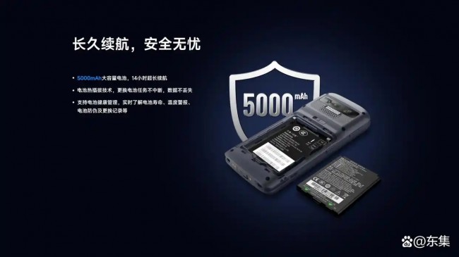 续航方面,设备配备5000mAh大容量电池,支持热插拔技术,更换电池时可保持任务连续与数据安全,满足快递员全天户外作业的续航需求。此外,2W大音量扬声器搭配振动提示、多色LED指示灯,可在分拣车间、商圈等嘈杂环境中,确保工作人员及时接收任务提醒与异常通知。