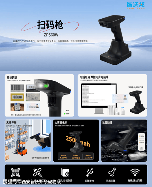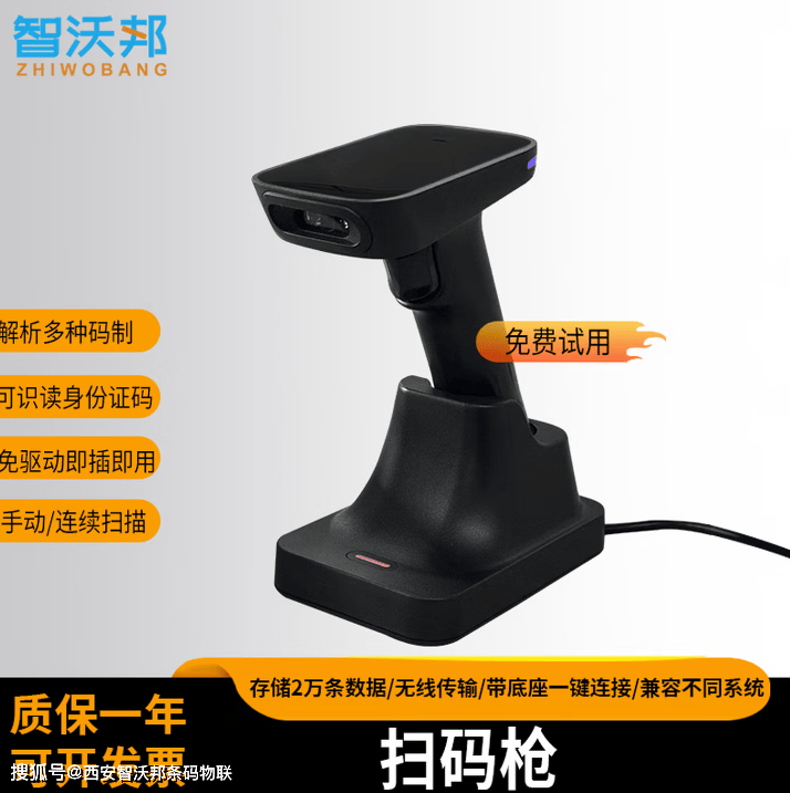 在数据传输方面,它支持蓝牙与无线2.4G双模通讯,空旷环境下传输距离可达100米,即使在仓库、商超等复杂场景也能稳定传输,搭配底座一键连接,摆脱线缆束缚。2500mAh高密度锂电池满电可支持2万次解 码,连续使用约5小时,满足全天工作需求,无需频繁充电。