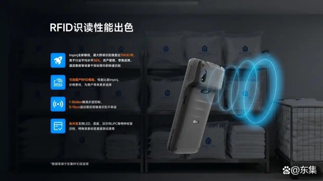 配合自研防碰撞算法,其群读速度最高可达700次/秒,让“秒级盘点”从概念变为现实,极大提升了库存管理的效率与数据准确性。