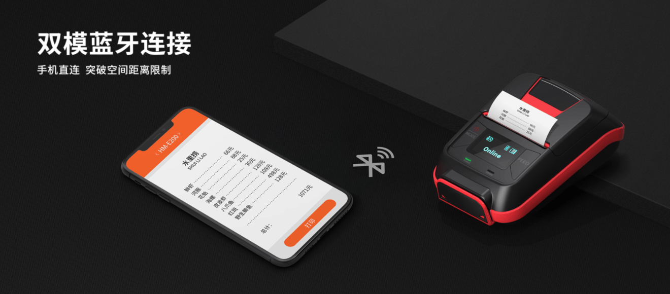 HM-E200最高打印速度可达到100mm/s,能够满足移动订单打印需求。