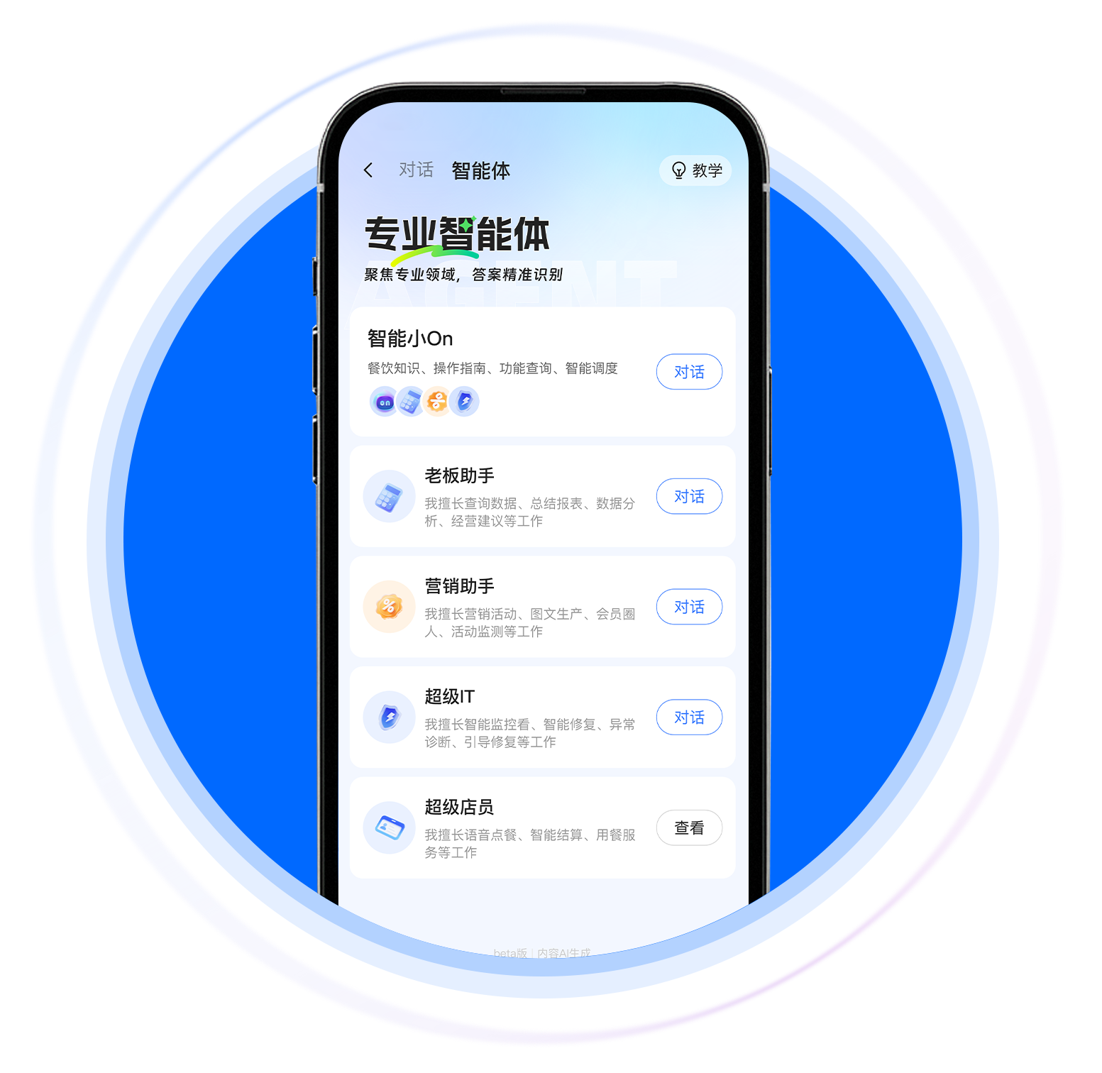 软件集成AI五大智能体,为商家提供全流程智能支持。智能小On可语音解答系统操作、营销方案等各类问题,解放人工客服压力;老板助手能通过对话快速调取经营数据,自动生成可视化图表与趋势分析,助力精准决策;超级店员支持语音点单、拍照数签等功能,大幅提升前厅服务效率;营销助手通过AI碰碰贴等工具,轻松实现公域推广与私域引流,让营销更精准高效。