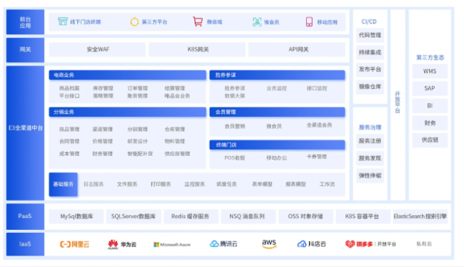 百胜软件E3全渠道云中台业务架构图