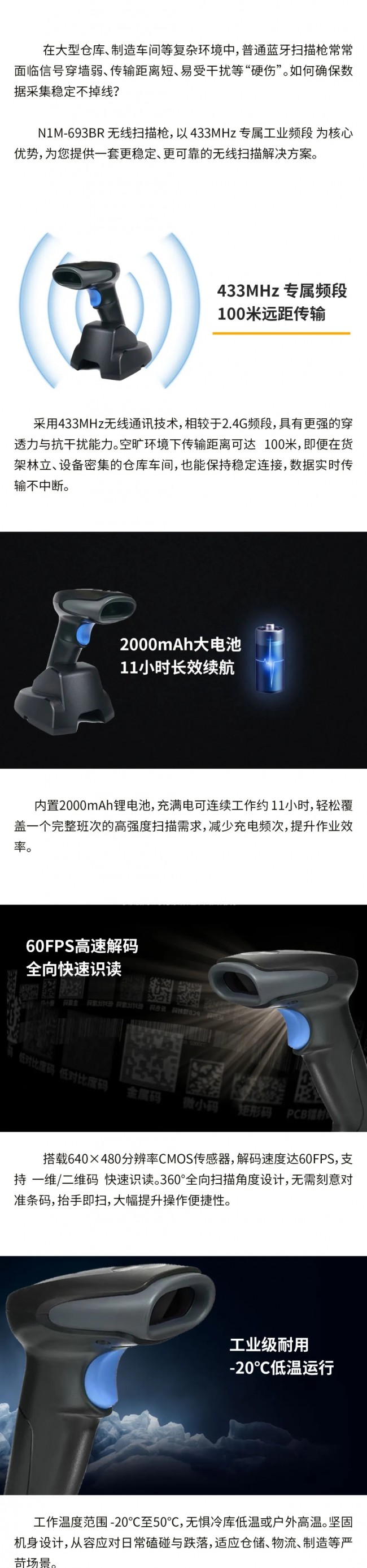 433MHz专属频段,100米远距传输!这款无线扫描枪专为工业环境打造