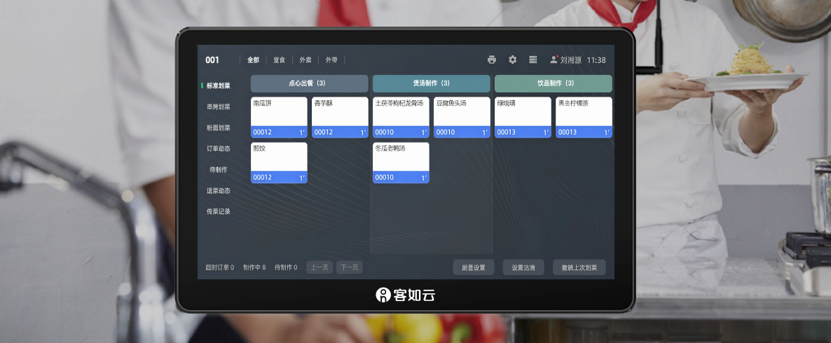 前厅与后厨实时联动,订单信息一键上屏,在实现无纸化操作、节约成本的同时,提升效率。KDS厨显系统支持按菜品分档派单、智能合并同类订单,搭配超时语音提醒功能,优化出餐顺序与节奏。后厨估清状态实时同步至前厅,减少超售情况;菜品变更可即时响应,临时加菜、改菜也能快速同步,保障出餐流畅性。配套专业打印机,适配后厨复杂环境,避免丢单漏单。