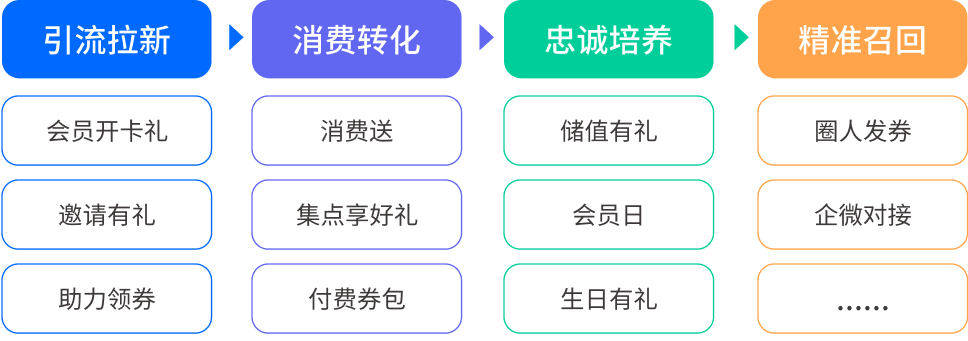 搭建多渠道会员引流体系,支持支付宝、微信小程序入会、企业微信入群等多种方式,将公域流量沉淀为私域会员。内置储值有礼、会员开卡礼、生日有礼等丰富营销玩法,结合大数据挖掘顾客喜好,实现智能人群投放。通过会员日、消费送、集点兑换等活动,提升会员忠诚度与复购率,同时支持会员等级划分与精准券包推送,让营销更具针对性。