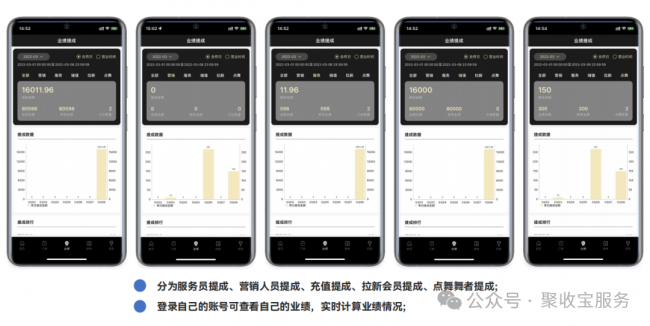 聚收宝自动生成多维度经营报表,覆盖:会员、营销、商品、财务、库存、互动、业绩、提成等全场景。